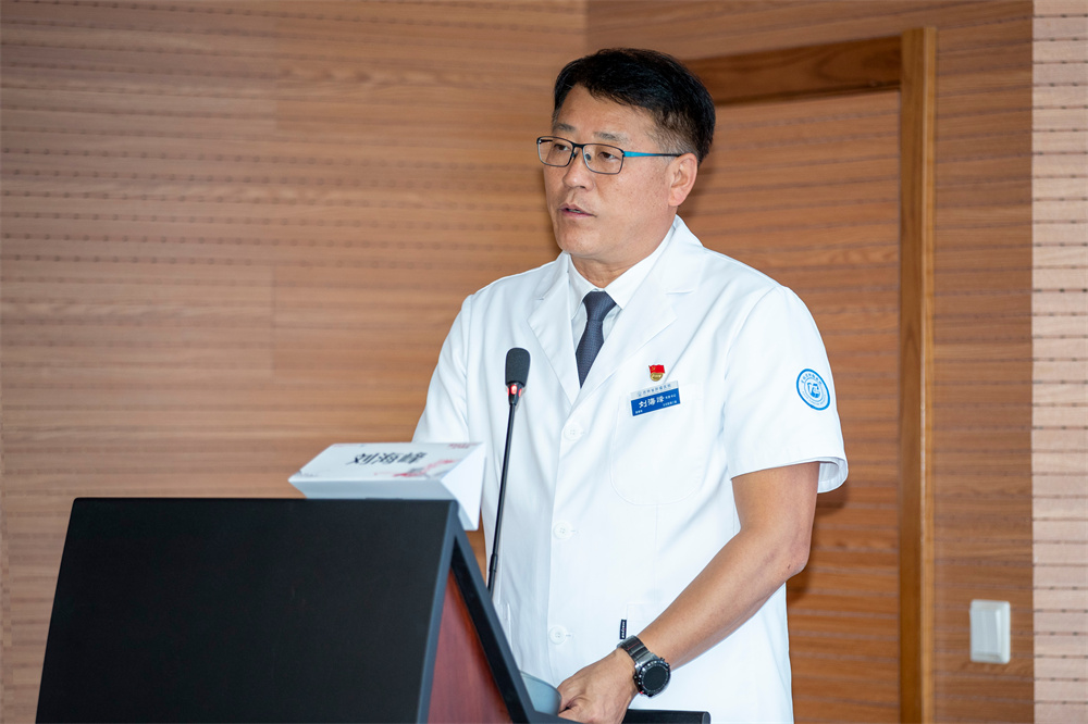 吉林省肿瘤医院党委书记刘海峰致辞。刘海峰书记在致辞中指出,此次外科周手术视频直播活动,是医院党建与外科业务工作的一次深度融合,也是我院助推外科高质量发展的重要举措。他表示,医院在省内率先引进达芬奇手术机器人系统,开展以胸腔镜、腹腔镜、宫腔镜为代表的微创技术,为众多复杂疑难肿瘤患者带来了新的希望。同时,医院高度重视外科的学科建设,乳腺肿瘤外科获批国家临床重点专科,胸部肿瘤外科、腹部肿瘤外科先后获批省级临床重点专科。他希望各位观看直播的同仁,能够通过相互学习、相互借鉴,不断提升自己的业务能力和技术水平,为患者提供更加优质、高效的医疗服务。