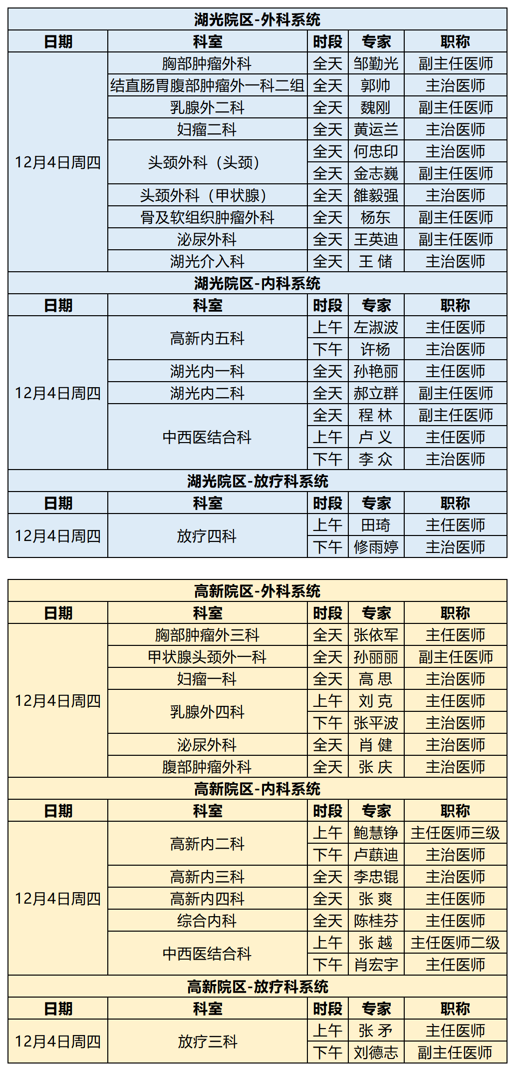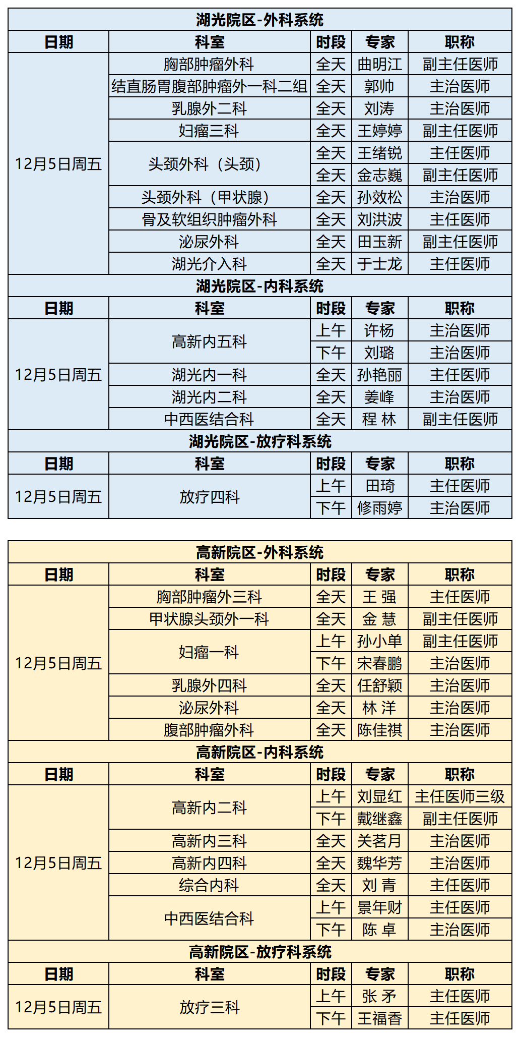 吉林省肿瘤医院12月1日-12月7日专家出诊信息 (仅供参考 以实际出诊情况为准)